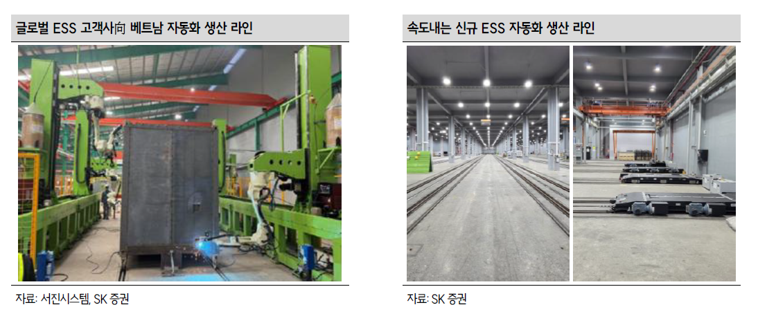 SK증권은 글로벌 ESS 시장이 정책 불확실성에도 불구하고 AI 데이터센터 확충·전력 인프라 개선 중심의 구조적 성장 국면에 들어섰다고 판단했습니다. 또 고사양 중대형 ESS 인클로저/메탈 플랫폼을 안정 공급할 수 있는 업체가 제한적인 상황에서, 서진시스템의 완제품 생산 노하우가 경쟁력으로 작용할 가능성을 강조했습니다.