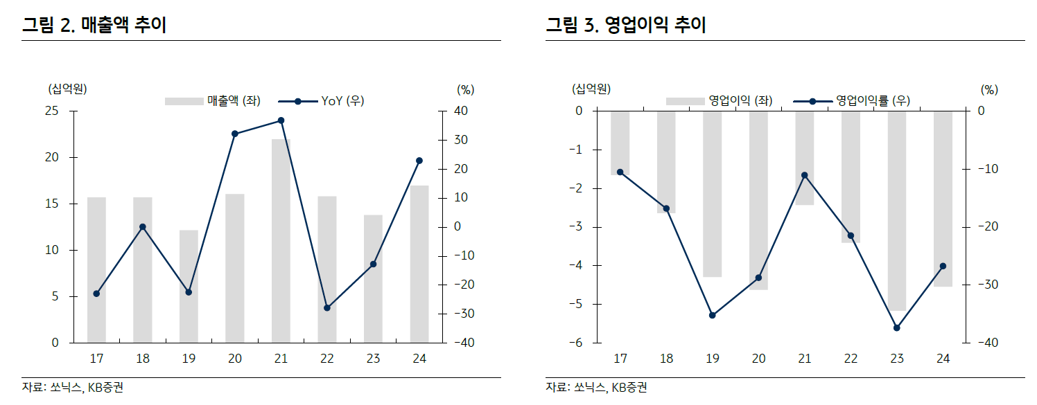 - 영업이익률: 2024년 -26.7%(추정)