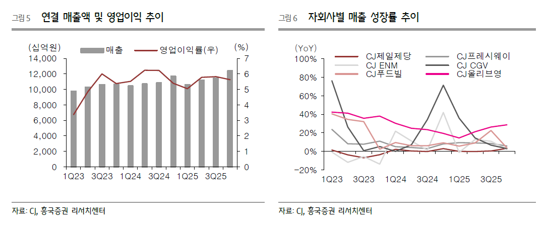 - 매출은 ENM(기저 부담)을 제외하면, 제일제당(대한통운 포함)·올리브영 중심으로 자회사 다수가 견조하다는 논리.